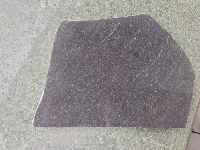 表札③ 材質 玄武岩 兵庫県豊岡産 (最後の写真の赤丸③) ・サイズ 横幅250×高さ230×厚み30ミリ ・底面 カット ・裏表 表面、裏面両方 研磨仕上げ ・表面 シマ模様、光沢 良好 文字彫刻費用込み。後ろにボルトを設置して壁に固定するタイプ。石台に置くタイプにも変更できます。ご相談ください。