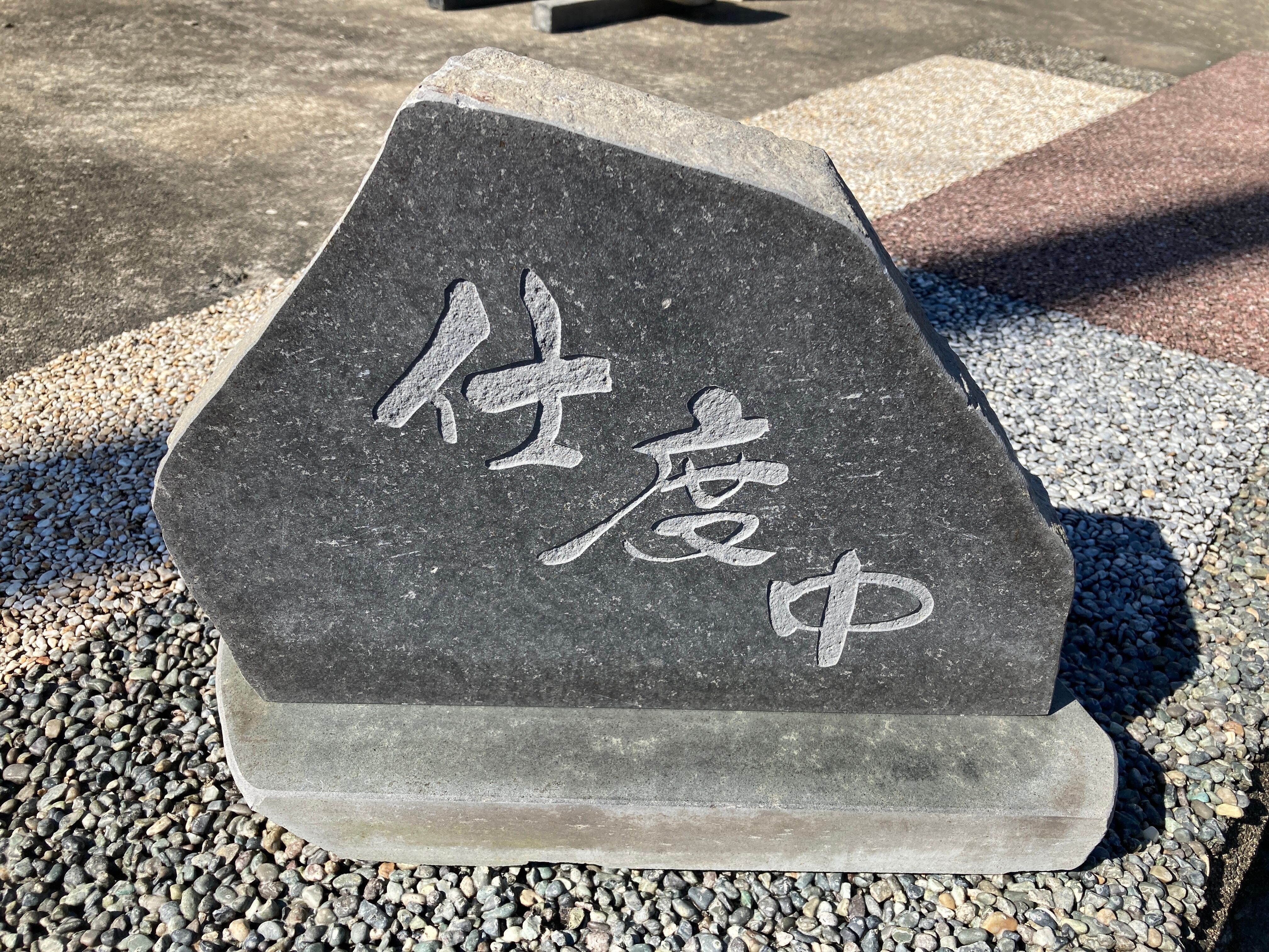 自然石の風合いを生かした看板となっています。玄武岩を使用したこの商品は、シンプルながらも重厚感があり、店先やエントランスにぴったりのアイテムです。また、一枚の表裏に文字が彫刻されており「商い中」「仕度中」と変えられます。
